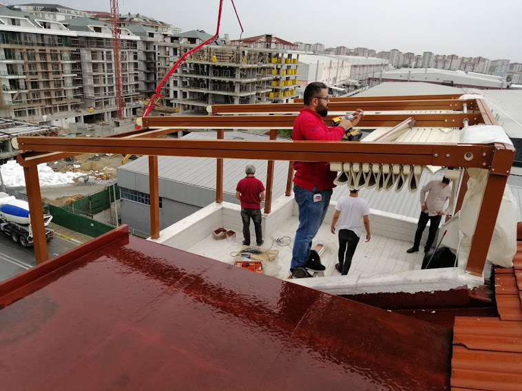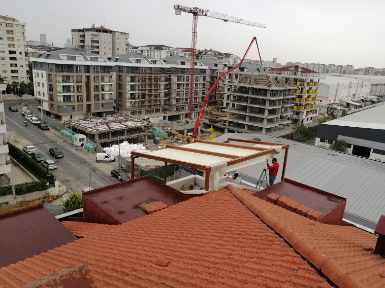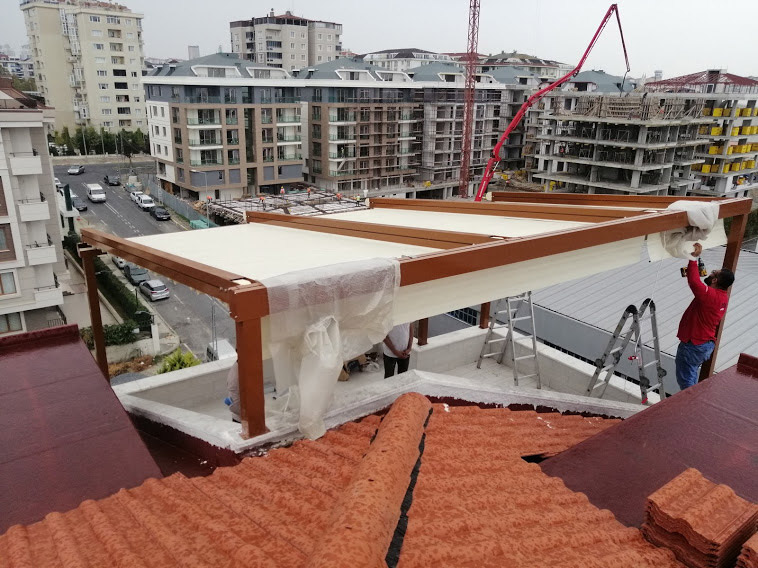 kafelerde pergola çatı olarak kullanımı söz konusudur. Açılıp kapanabilen Pergola sistemler yaz ve kış